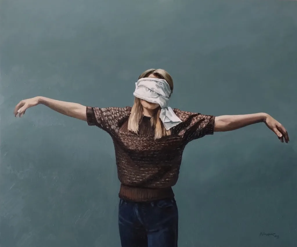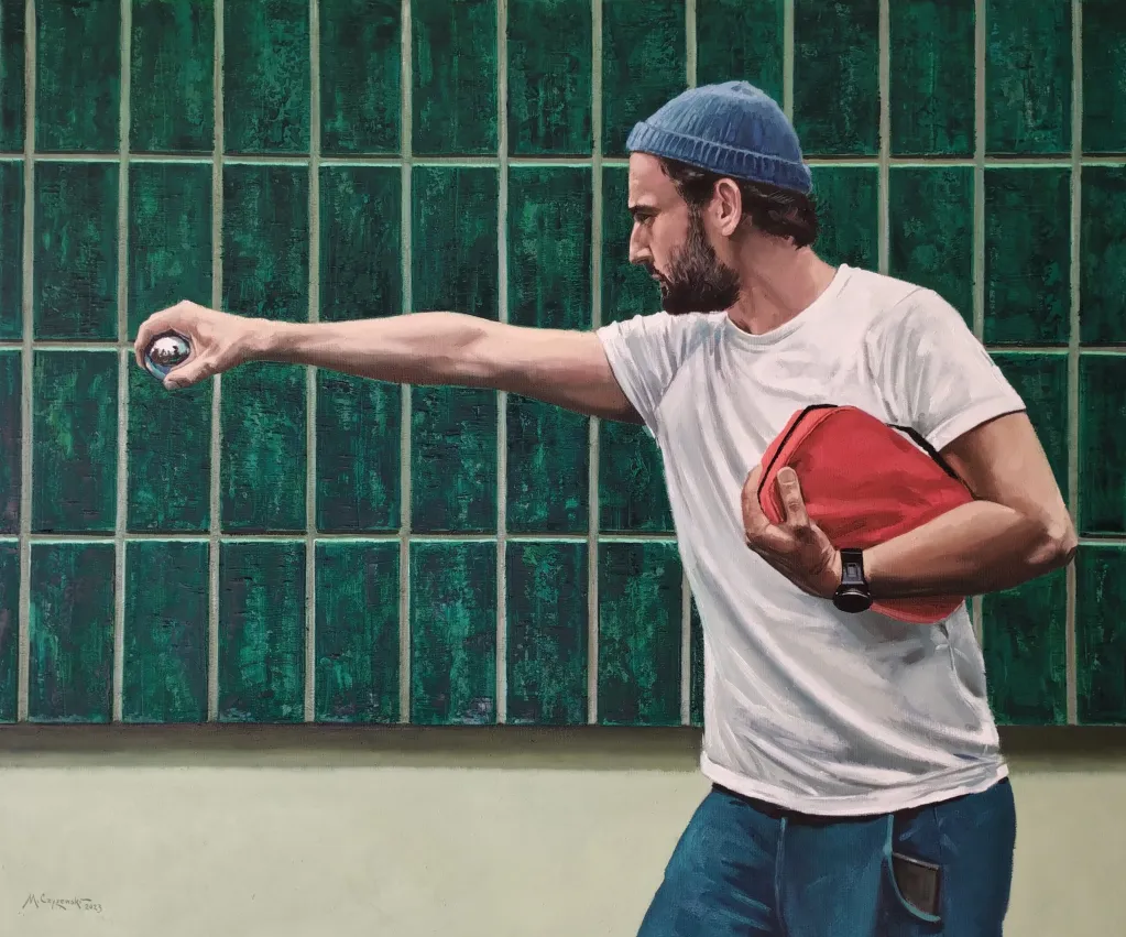 Tytuł wystawy Chwile z codzienności odnosi się bezpośrednio do pojęcia realizmu rozumianego w ścisłym jego znaczeniu. Jednym z pierwotnych założeń tego kierunku było postanowienie, że inspiracją dla artysty powinny być wydarzenia mające miejsce w czasie i przestrzeni, w których on sam funkcjonuje. Zatem bohaterami moich obrazów są osoby wykonujące różne codzienne czynności, często zwyczajne, innym razem mniej pospolite. Są one jednak prawie wszystkim znane. Każdy z nas uczestniczył przecież w lekcjach matematyki, a większość dla sportowej rywalizacji lub po prostu zabicia czasu grała w różne gry. Być może są też tacy, którzy pamiętają zabawę z dzieciństwa określaną mianem „ciuciubabki”. Tak zwana proza życia trwająca w danym czasie i kulturze jest dla mnie wystarczającym powodem, by poszczególne kadry rzeczywistości przenieść na płótno, nadając im jednocześnie większe znaczenie.