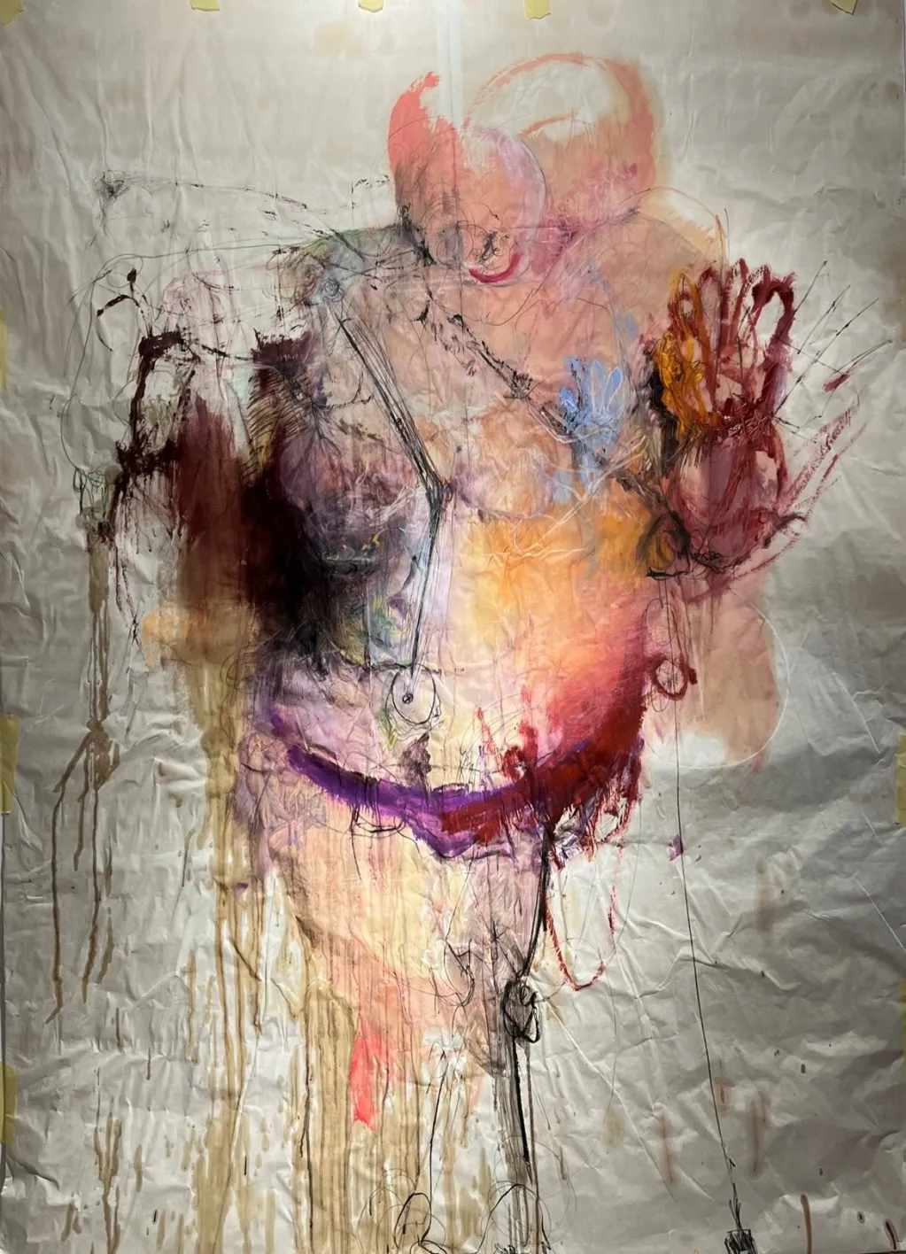 Wiedząc, że sam materiał, na którym znajduje się mój twór, przejawia cechy żywości, łatwiej mi w nim ją dostrzec. Przygotowane tak podobrazie jest znacznie bardziej podatne na czynniki pochodzące z otoczenia niż inne, z których mógłbym korzystać.