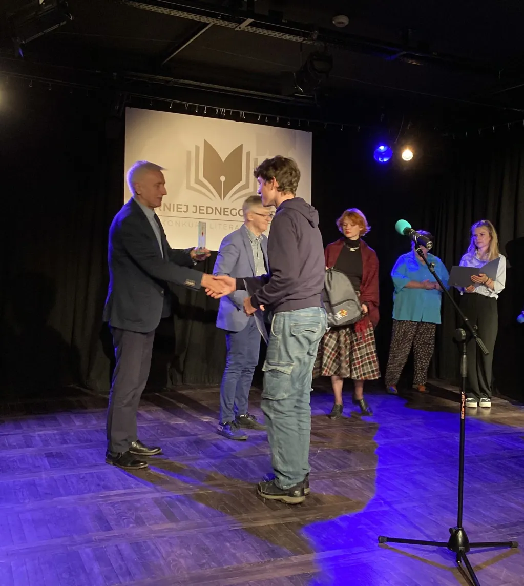 - Piotr Arabas z CXXII Liceum Ogólnokształcącego im. Ignacego Domeyki w Warszawie za wiersz Po Wiśle