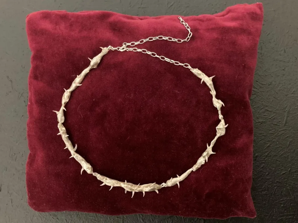 Splatając osobiste narracje z motywami religijnymi i animalistycznymi, rzeźby przywołują instynkt, duchowość i ślady dawnych historii. Często wykonane z metalu – trwałego i odpornego na czas, jak srebro, które jaśnieje dzięki dotykowi i noszeniu – przypominają o ciągłości i nieustannym odnawianiu pamięci. Wystawa Przebłyski to refleksja nad tym, co zostaje z nami, choć nie zawsze jest dostrzegane – o obecności, przemijaniu i przypominaniu.