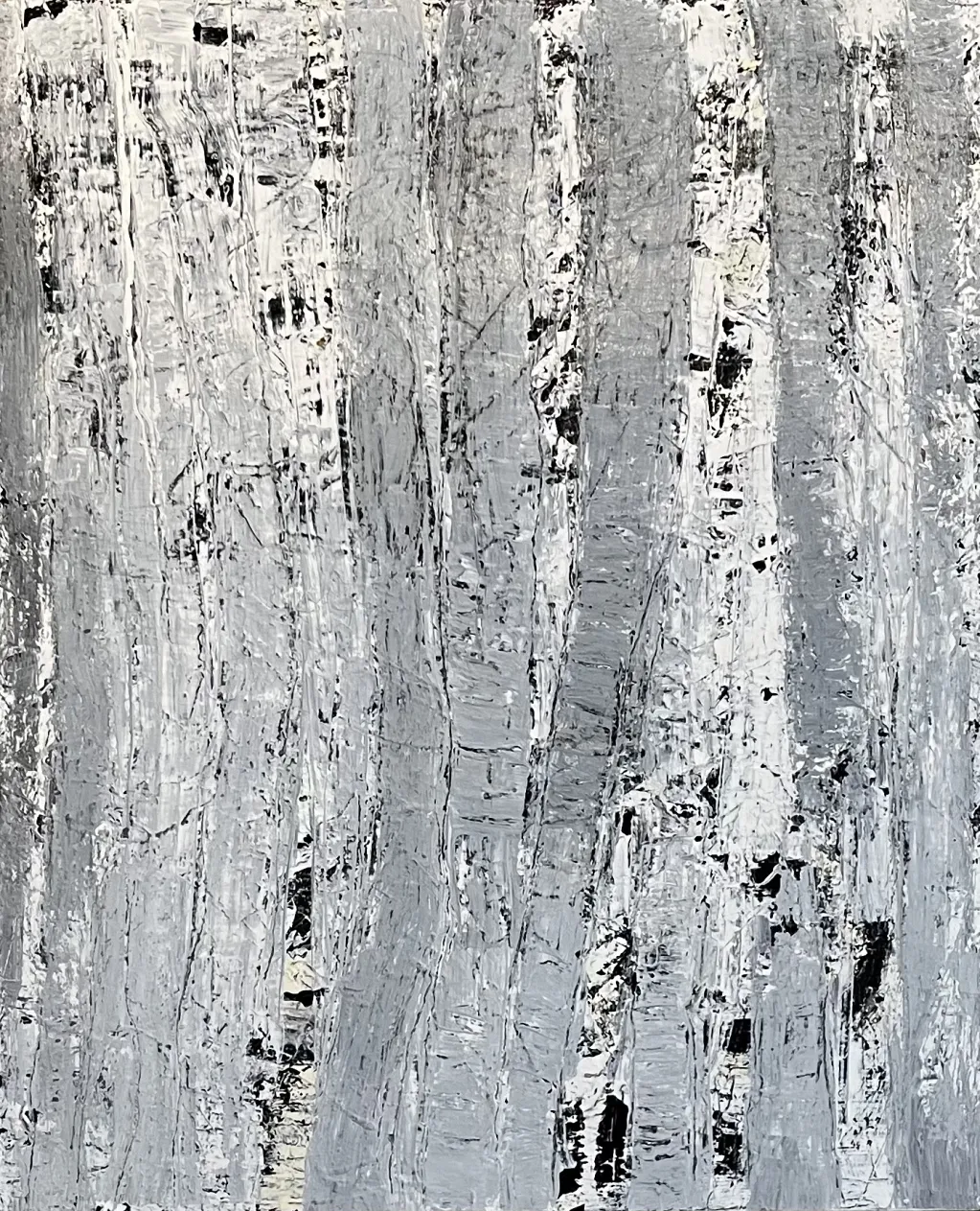 Od lat moje obrazy i obiekty poruszają tematykę ekologiczną. Kolejne prezentacje, takie jak Powracające pejzaże, Okna Świata czy ostatnia Liczenie umarłych drzew, to konsekwentna realizacja tego tematu. Abstrakcja najpełniej obrazuje moje emocje i przemyślenia. Monochromatyczna kolorystyka i minimalistyczna kompozycja doskonale trafiają w sedno problemu. Uszeregowane ciągi znaków – kreski, nacięcia – ranią płaszczyznę płótna. W taki sposób ewidencjonuję straty. Są jak kwity czy swoiste kompromaty.