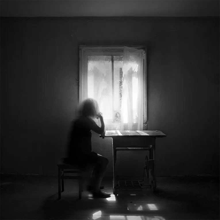„Niezgoda na ciszę” to cykl fotografii odsłaniający moje przeżycia związane z rodzinnymi traumami. Ujawniam niepokój i rozpacz, którymi była owładnięta moja rodzina w czasie stalinizmu. Poszukuję powiązań między bólem teraźniejszym a tym z przeszłości. Bólem nigdy nie wypowiedzianym ale tkwiącym głęboko we mnie. Cierpienia ukrywane w moim rodzinnym domu jako temat tabu przyczyniły się do osłabienia naszych więzi, były źródłem istotnych nieporozumień, oddalania się od siebie aż ostatecznie doprowadziły do powstania pustki emocjonalnej. Prezentowane prace stworzyłam z potrzeby wyrażenia niezgody wobec tamtych tragicznych wydarzeń. Z niezgody na ciszę wobec przeżyć, które tak długo były ukrywane za murem milczenia i wycofania.