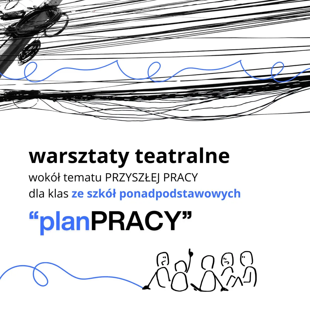 PLAN PRACY to oferta 3 spotkań warsztatowych, podczas których, korzystając z narzędzi teatru, mądrości grupy i kreatywności jednostek- przyjrzymy się twórczo tematowi pracy. Nasza propozycja ma na celu przybliżenie i oswojenie obarczonych często lękiem czy niepewnością przemyśleń młodych ludzi o przyszłości, zarabianiu, sukcesie i związanych z tym oczekiwań. Rozpakowaniu tematu pracy przyszłości może towarzyszyć lekkość i zabawa, a przy pomocy ruchu, gestu, wyobraźni i zestawieniu przekonań mogą powstać wyśnione PLANY PRACY albo wręcz takie, o jakich nam się nie śniło.