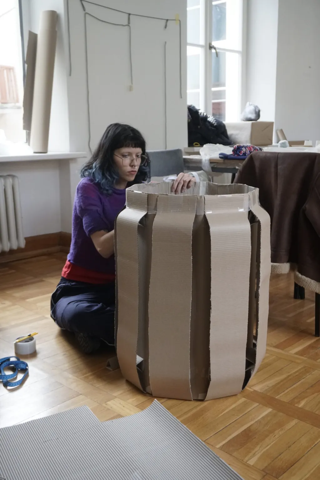 Opis wystawy: Celem warsztatów było zredefiniowanie pojęcia dobrostanu poprzez kreowanie obiektów przestrzennych. Każdy projekt wykonany przez uczestników i uczestniczki warsztatów różni się ze względu na formę, oświetlenie, geometrie, układ funkcjonalny i umiejscowienie w przestrzeni Galerii Brzozowa. Wybór i określenie potrzeb użytkowników docelowych zaprojektowanych obiektów oraz ich specyficznych potrzeb przekłada się na rozwiązania przestrzenne i materiałowe. W trakcie wernisażu, podsumowującego proces pracy, Galeria Brzozowa zamienia się w przestrzeń poruszającą zmysły, sumienia i umysły odwiedzających.