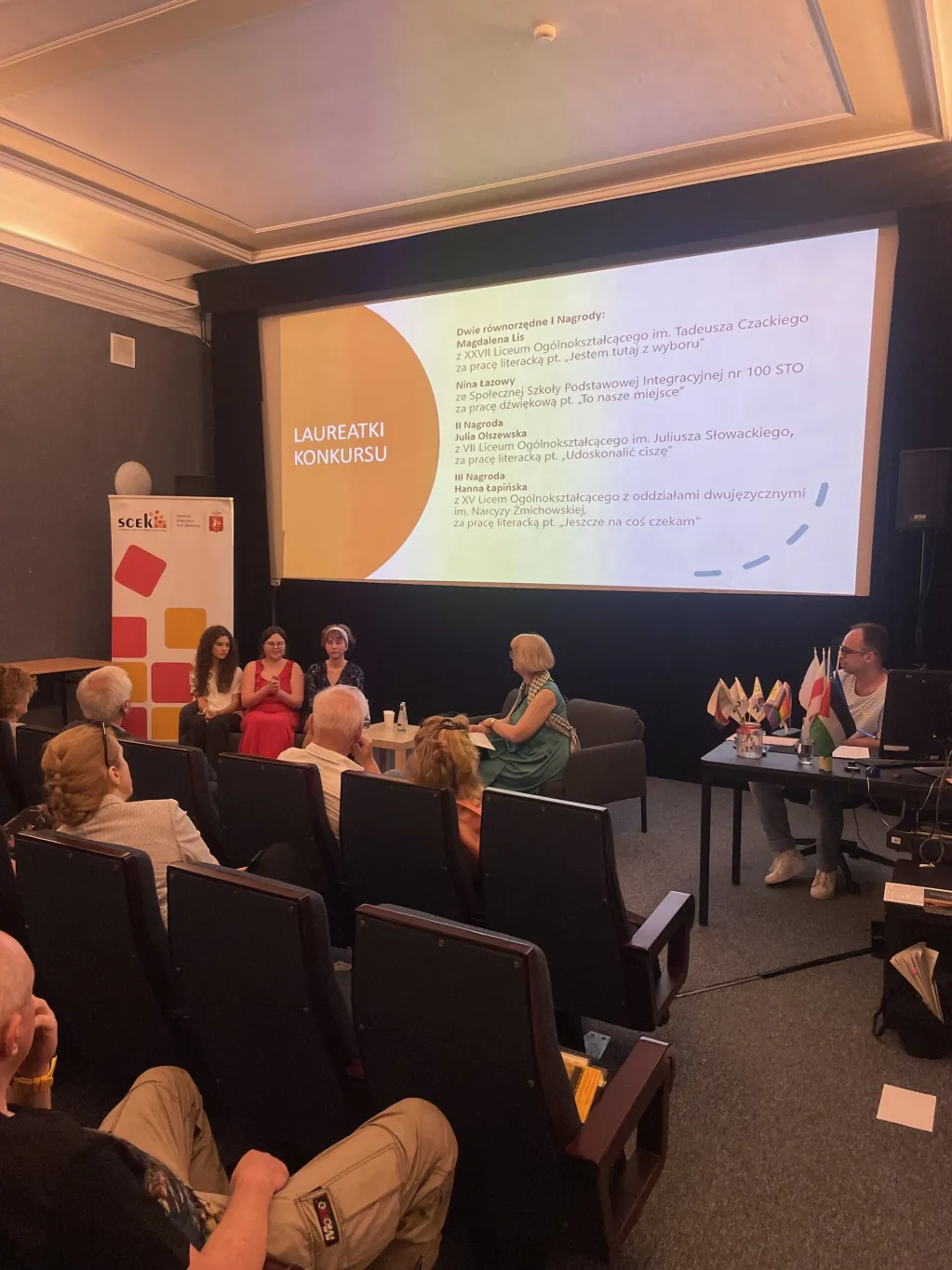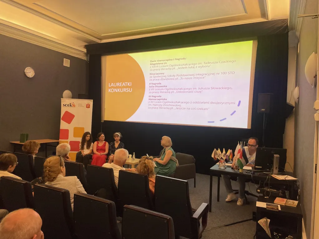 Mogliśmy wysłuchać posumowania 15-lecia Konkursu w rozmowie z naszymi gośćmi: dyrektorką Biura Edukacji m.st. Warszawy Joanną Gospodarczyk, dyrektorką Biura Kultury m.st. Warszawy Małgorzatą Naimską i dyrektorem Stołecznego Centrum Edukacji Kulturalnej Wojciechem Feliksiakiem. Rozmowę prowadziła przewodnicząca Jury i koordynatorka merytoryczna konkursu, prowadząca warsztaty dziennikarskie w SCEK – Bożena Dudko.