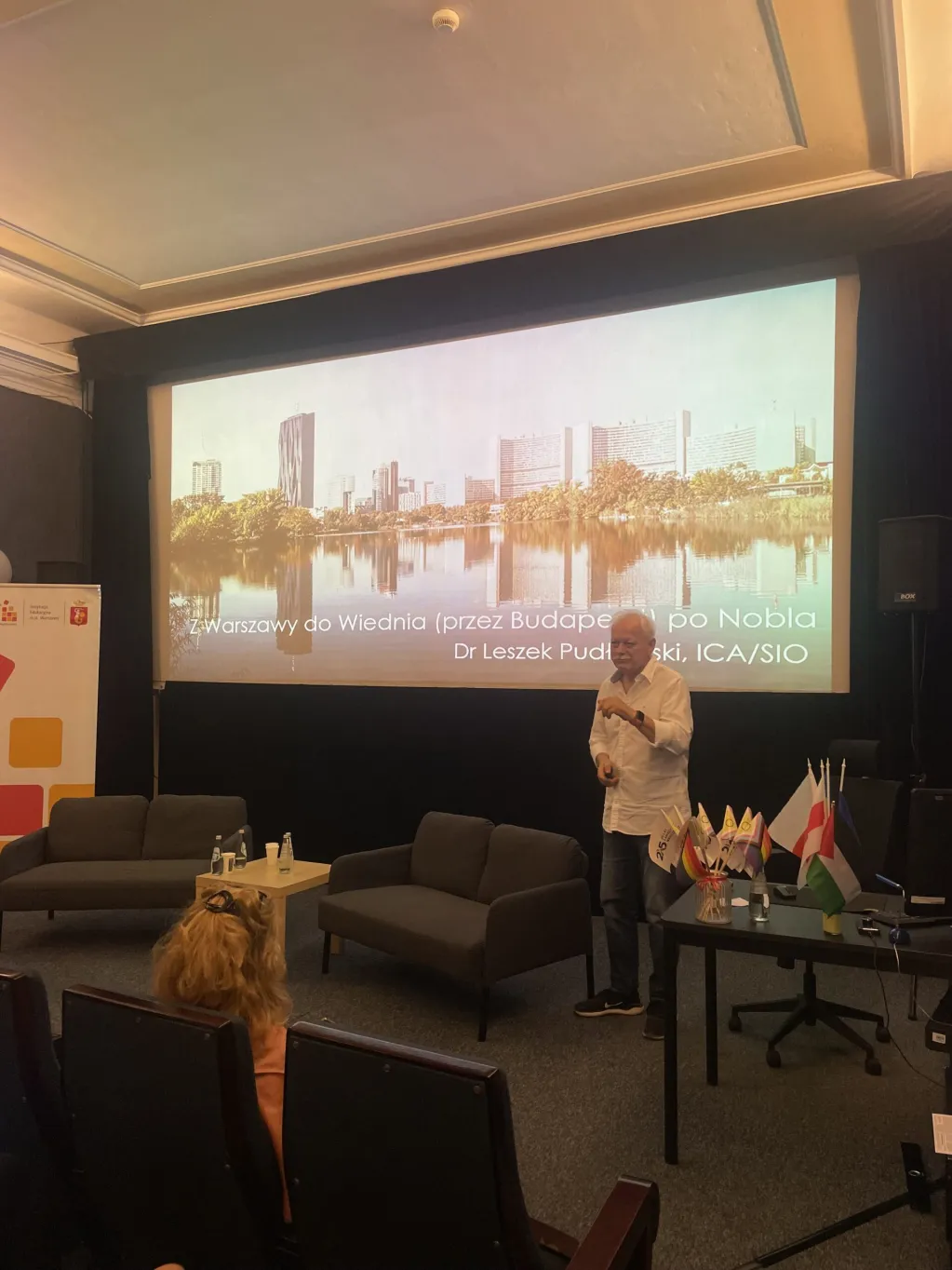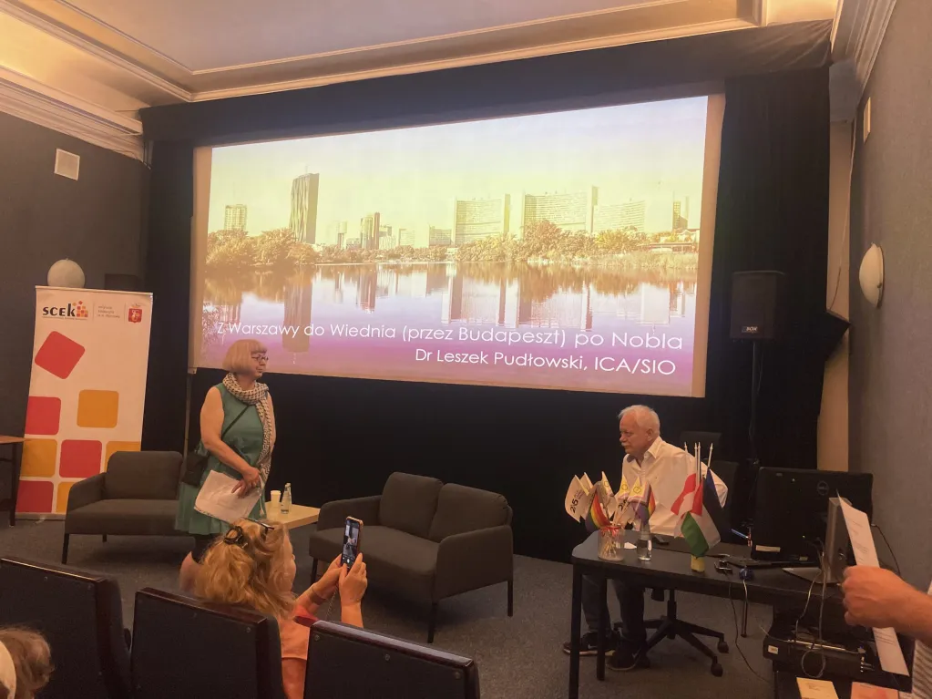 Mieliśmy też okazje wysłuchać bardzo ciekawego wykładu dr. Leszka Pudłowskiego “Z Warszawy do Wiednia (przez Budapeszt) po Nobla!”