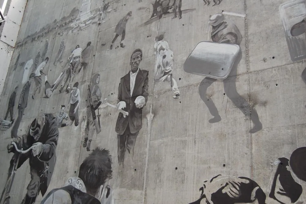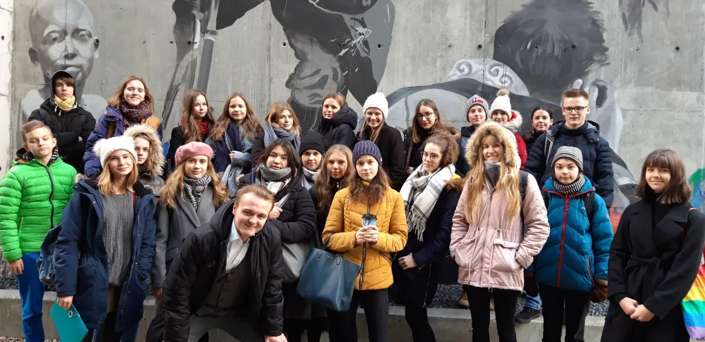 Zdjęcia grupy pod muralem są autorstwa Bożeny Dudko.