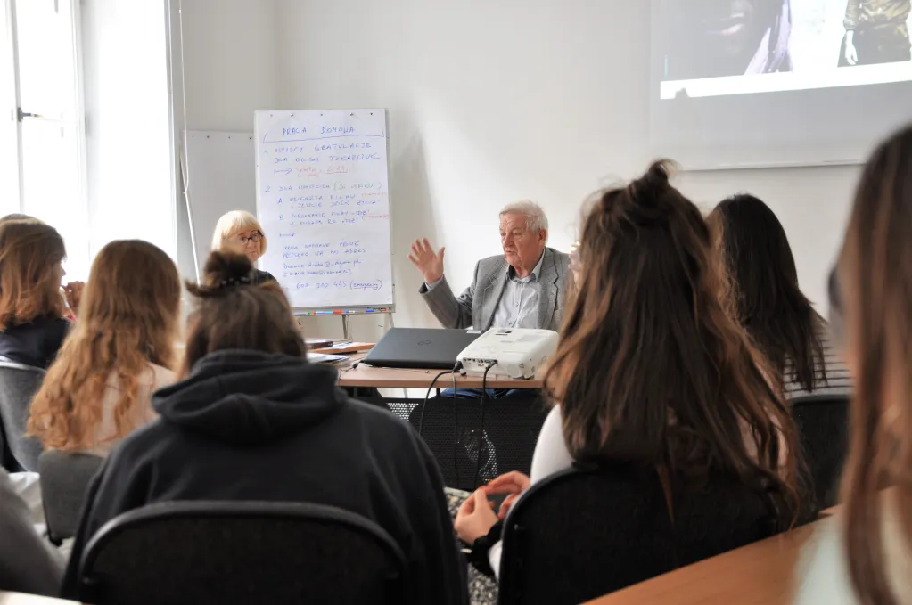 Przed Wami fantastyczna przygoda! Podczas pierwszych zajęć spotkacie się z red. Mirosławem Ikonowiczem, przyjacielem Ryszarda Kapuścińskiego z PAP, poznacie specyfikę pracy korespondenta wojennego i dziennikarza agencyjnego, obejrzycie film „Jeszcze dzień życia”,