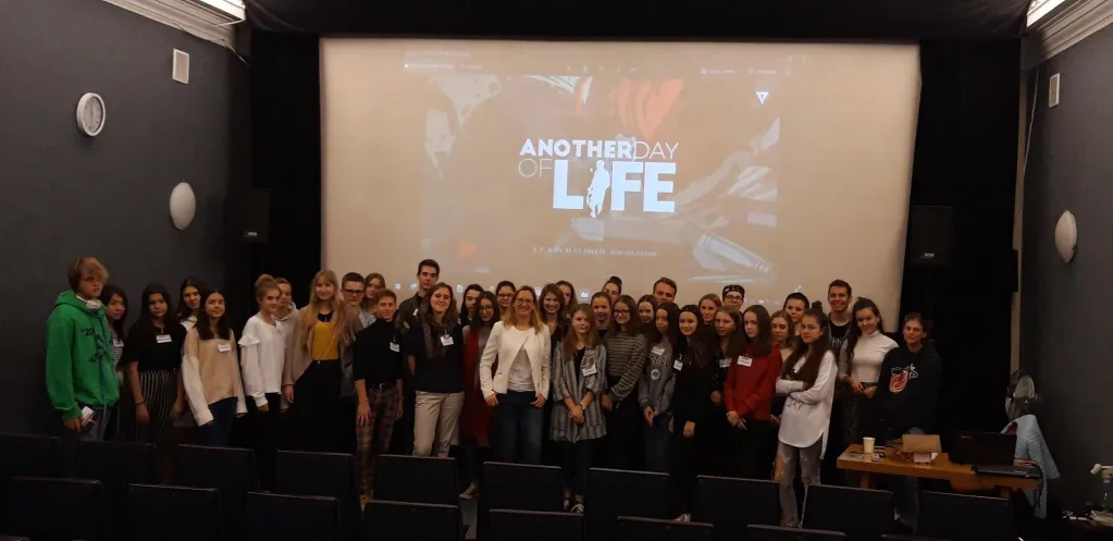 Pretekstem do rozmowy o patronie Nagrody i pracy korespondenta wojennego podczas naszego pierwszego spotkania była projekcja filmu “Jeszcze dzień życia” w reżyserii Raula de la Fuente i Damiana Nenowa (2018). Przed projekcją o 9-letniej pracy nad filmem opowiadała Katarzyna Jarzyna, kierownik produkcji. A po projekcji wojnę domową w Angoli przybliżył nam jej naoczny świadek red. Mirosław Ikonowicz, kolega Ryszarda Kapuścińskiego z PAP-u.